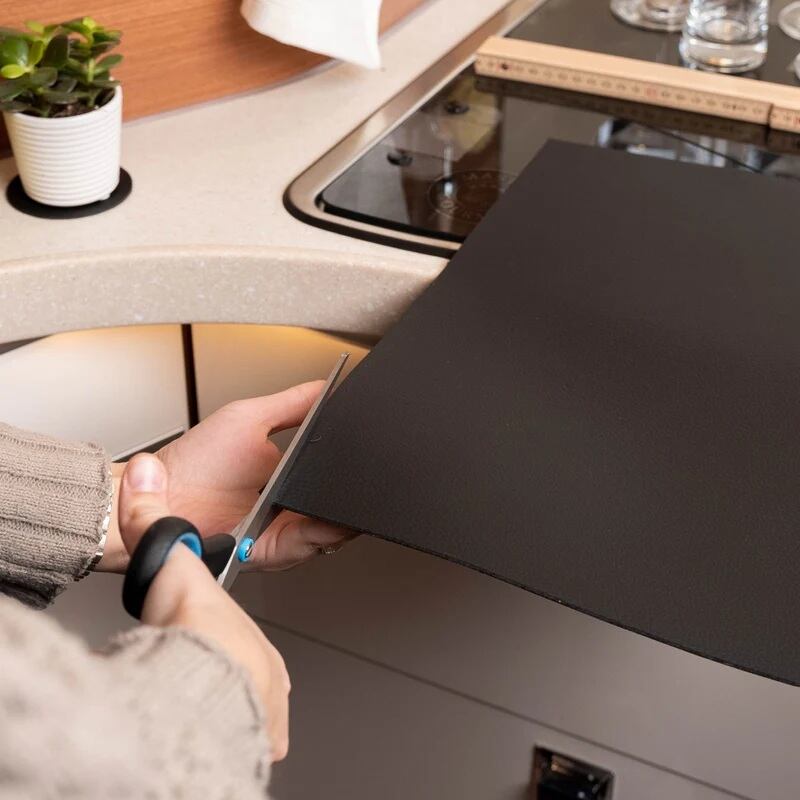 ハサミで自由にカットできるため、収納スペースや引き出し、棚のサイズに合わせて無駄なくフィット。さらに、フックやピンを使えば、上質なピンボードとしても活用できます。